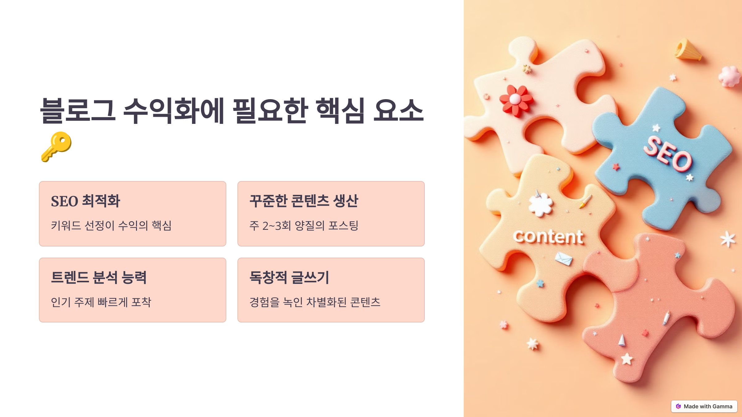 - 블로그 수익화에 필요한 핵심 요소