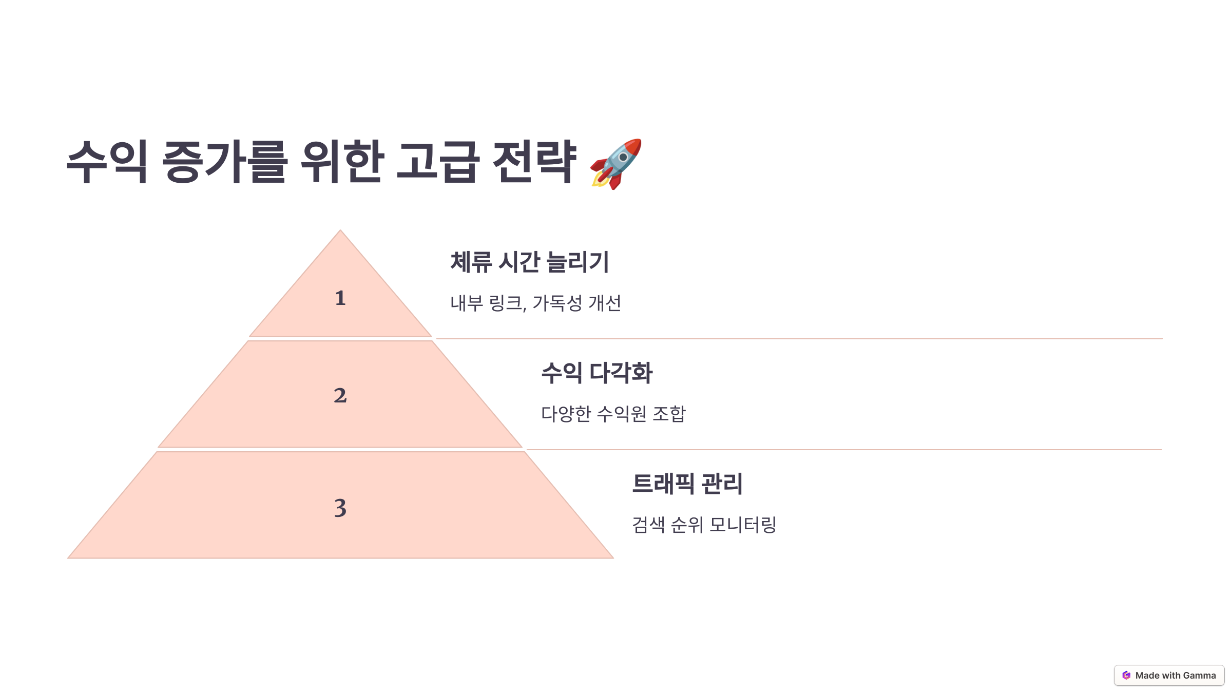 • 제휴 마케팅, 정보 판매, 광고 수익을 함께 활용