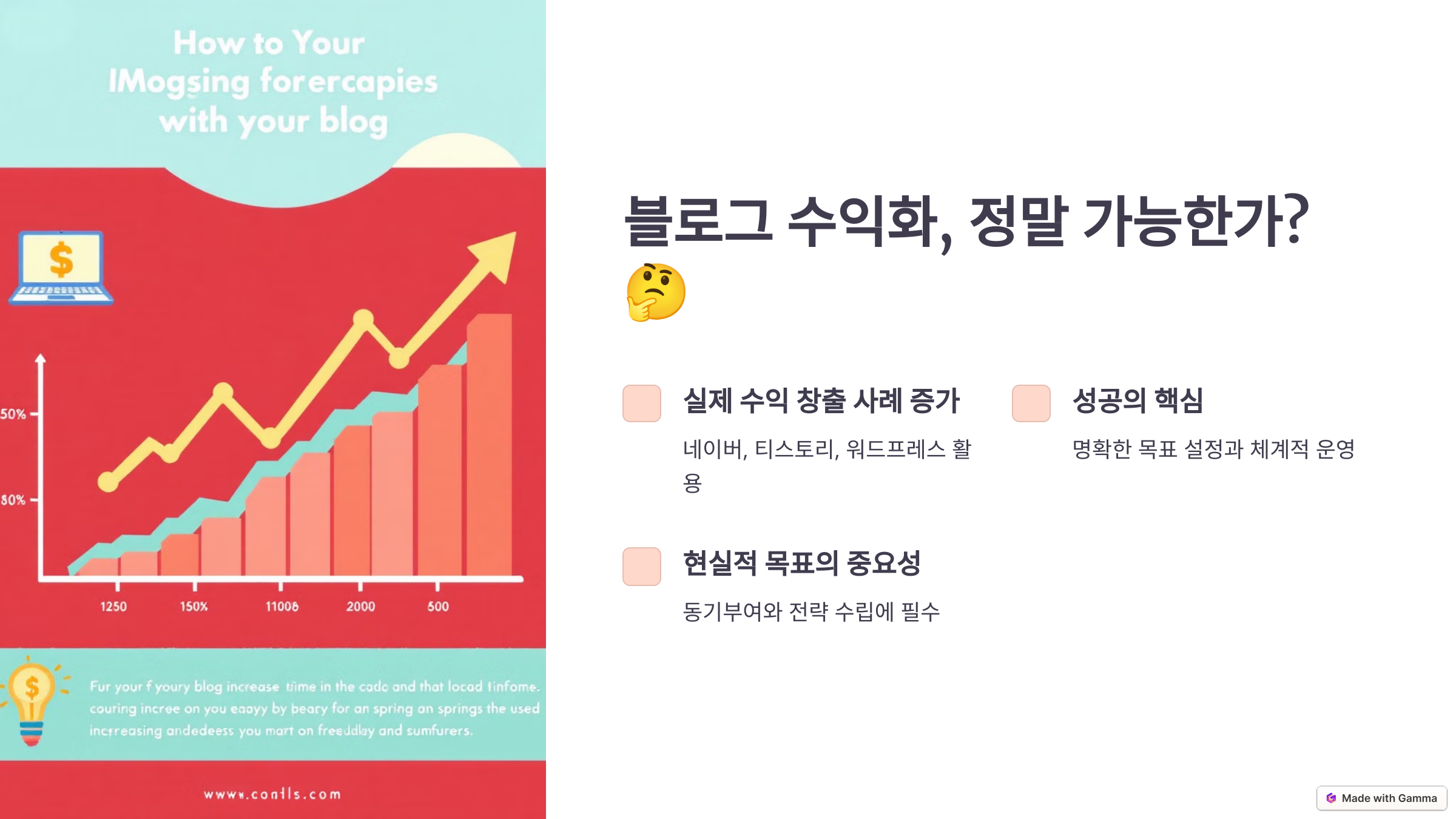 블로그 수익화는 단순한 '희망사항'이 아니라, 실제로 많은 사람들이 실행하고 있는 방법입니다. 네이버 블로그, 티스토리, 워드프레스 등을 통해 수익을 창출하는 사례가 꾸준히 늘어나고 있어요.